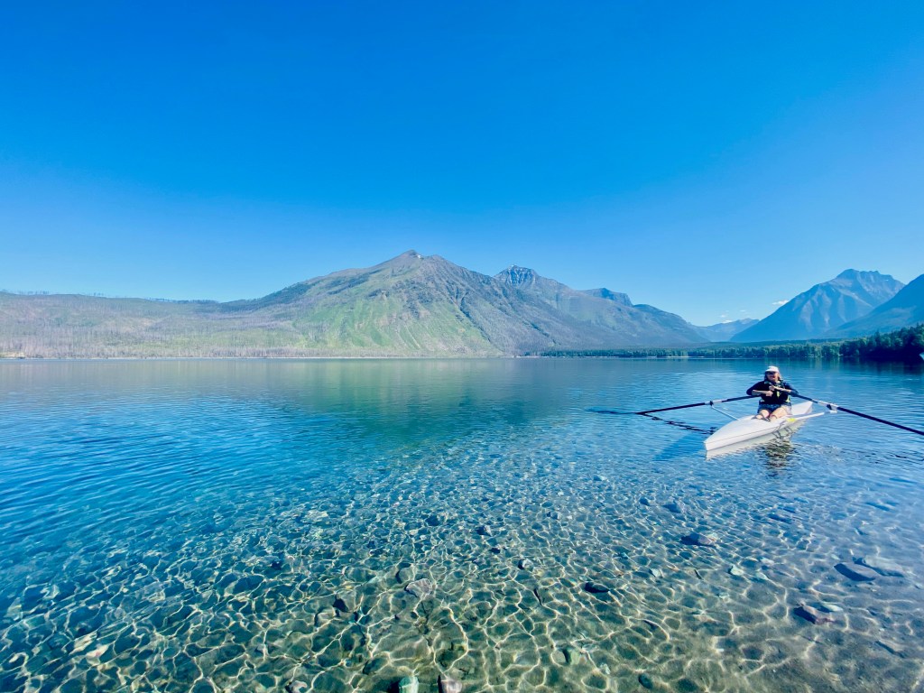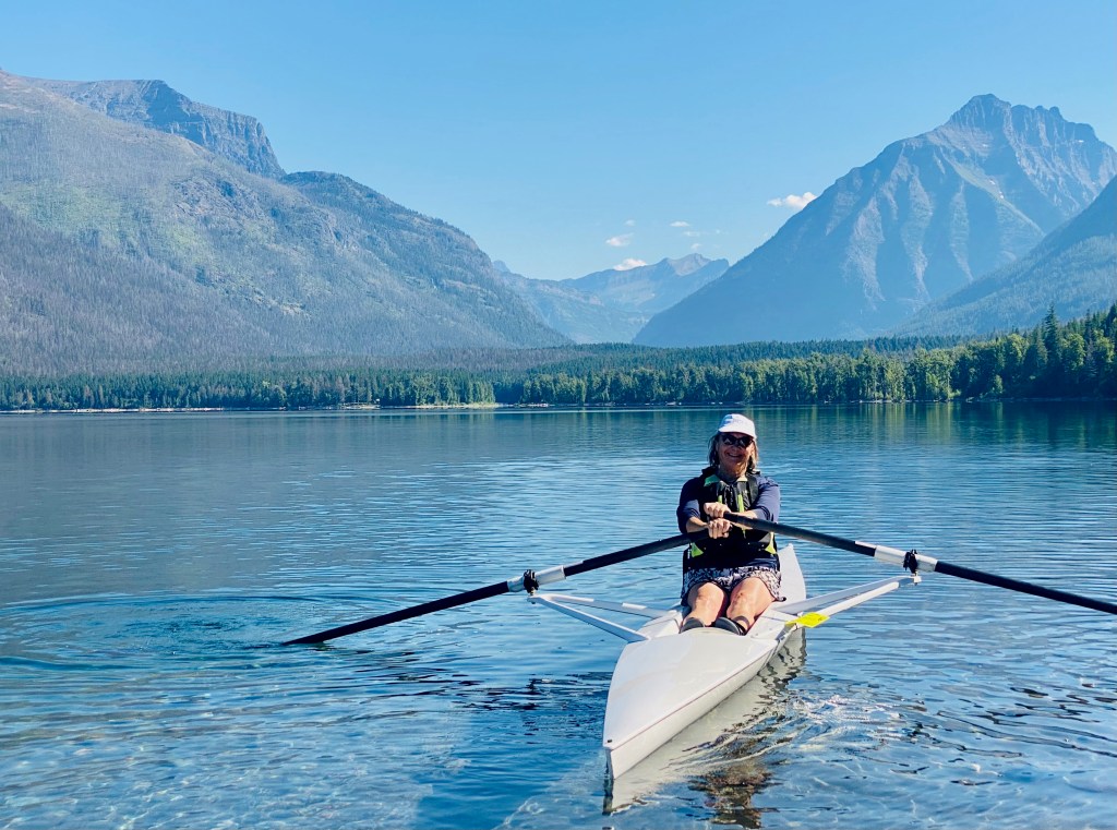Oh, I also rowed on Swiftcurrent Lake, with Many Glacier Lodge and amazing mountains as a backdrop. I was looking for that moose along the shoreline, but maybe she was right under me diving for dinner!